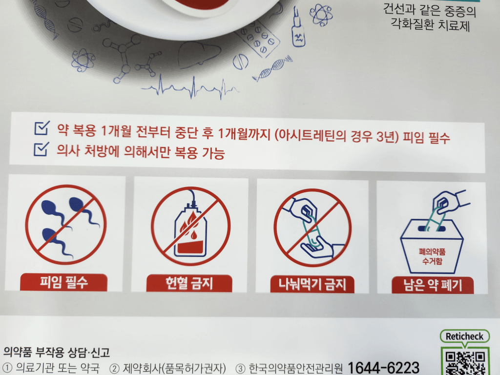 Blood donation is prohibited up to one month after medication/interruption (three years of ascitretin).