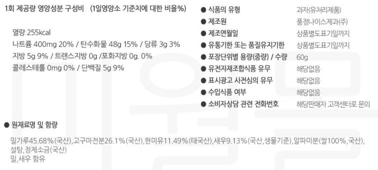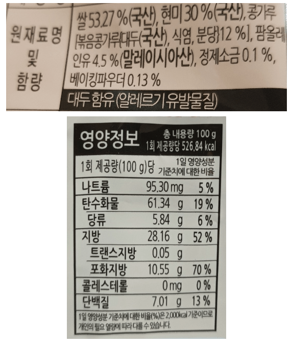 ✔️국산 옥수수, 쌀, 볶은콩가루, 천일염이 들어있어요.