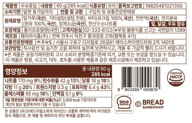 ✔️밀, 계란, 버터, 우유 모두 국산 재료를 사용했어요.