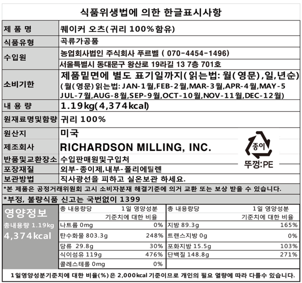 ☑️퀘이커 오트밀📦📦