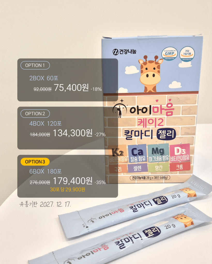 | ๐ณ์ฐ๋ฆฌ์์ด ํค ์ฑ์ฅ์ ์ํ ์นผ์๊ณผ ์๋ฉด์ ์ํ ๋ง๊ทธ๋ค์, ๋ฏธ๋ค๋ ์ ์ฑ๊ฒจ์ฃผ๊ณ ๊ณ์ ๊ฐ์? ํค์ฑ์ฅ์ ์ํด์๋ ๋จ๋ฐฑ์ง๊ณผ ํจ๊ป ๋ผ์ฑ์ฅ์ ์ง์ ์ ์ธ ์ฌ๋ฃ๊ฐ ๋๋ ์นผ์๋ ๊ผญ ํ์ํด์โค๏ธ ๋ผ๋ก ์นผ์์ ๋ณด๋ด์ฃผ๋ ๋นํ๋ฏผK2๋ ํจ๊ป ๋ฐฐํฉ๋ ์ ํ์ด ์ข์์ ๐์์ด๋ง์ ์นผ๋ง๋ K2 ์ ค๋ฆฌ๐ : ์นผ์ + ๋ง๊ทธ๋ค์ + ๋นํ๋ฏผ D3 + ๋นํ๋ฏผ K2 + ๋ฏธ๋ ๋ฏธ๋ค๋๊น์ง ์ด ๋ชจ๋ ๊ฒ์ด ๋ค ๋ค์ด์์ด์๐ ๐ ์๋ฃ๊ฐ ์ ๋ง ์ข๊ณ ์ฌ๊ณผ๋ง ์ ค๋ฆฌ๋ผ ๋ง์์ด์ ์์ด๋ค์ด ์์ฒญ ์ข์ํด์ โค๏ธ ์ต๋ค๊ตฌ์ฑ ๊ตฌ๋งค์ ์ต์ ๊ฐ 30ํฌ 29900์!! 12๊ฐ์-36๊ฐ์: ํ๋ฃจ 1/2ํฌ 36๊ฐ์ ์ดํ ์ญ์ฐ์ฑ ํ๋ฃจ 1ํฌ ์ฑ์ฅ๊ธฐ ์ฒญ์๋ ๊ณผ ์ด๋ฅธ์ ์ํ ์์ฝ ํ์ ๋ ์์ด์๐ค ํ๋ฌ๋ถ 22300์๋์์!! ๐ข๊ณต๋๊ตฌ๋งค ์งํ์ค์ด์ด๋ ์๋๋งํฌ ์ฐธ์กฐํ์ธ์๐ข https://smartstore.naver.com/ggnn/products/12746799737 |